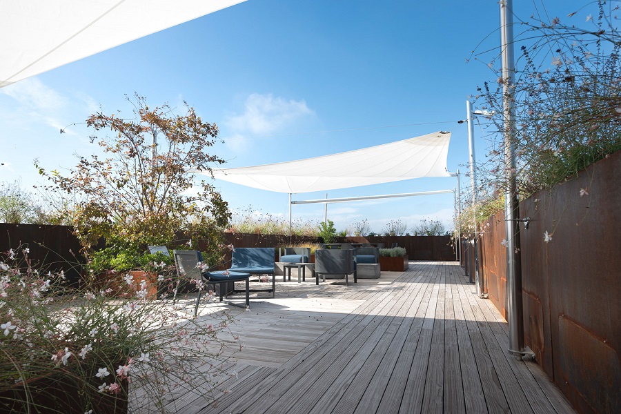 KHEOPE K13, una vera e propria vela ombreggiante di grandi dimensioni che esprime modernità ed assicura un’importante zona d’ombra, rappresentando una scelta innovativa per le coperture di domani. L’acciaio inox della struttura ed i materiali della vela fanno sì che la funzionalità sia assoluta ed il design leggero, moderno, essenziale.
