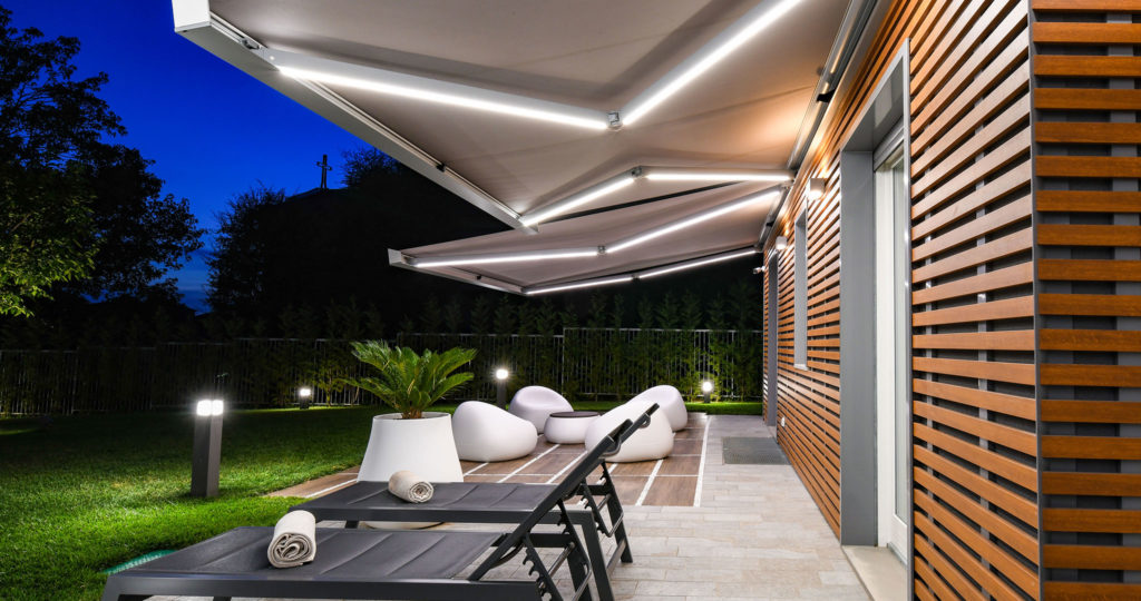 In realtà è appena cominciata, perché dopo ore di onorato lavoro mirato a creare freschi angoli d’ombra in questa affascinante infilata di stanze outdoor, le tende da sole Qubica Plumb e Gennius Vega, progettate per vivere gli spazi open H24, sono pronte a (ri)dare il meglio di sé proprio all’imbrunire… Come?