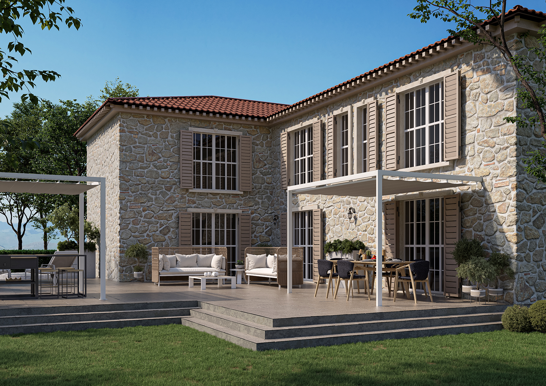 La vasta scelta di coperture per esterni, tende a pergola di design, pergole con finiture e misure personalizzabili, tende da sole e vele, sapranno trasformare qualunque spazio outdoor in un angolo di relax e benessere.