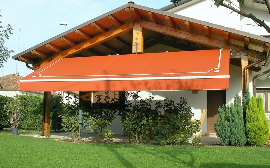 Tenda da sole a bracci estensibili con possibilità di installazione a parete o a soffitto.