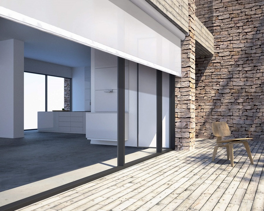 Tende a rullo per esterni con guide laterali e cassonetto da 130 mm disponibile in 2 varianti (tondo/quadro)